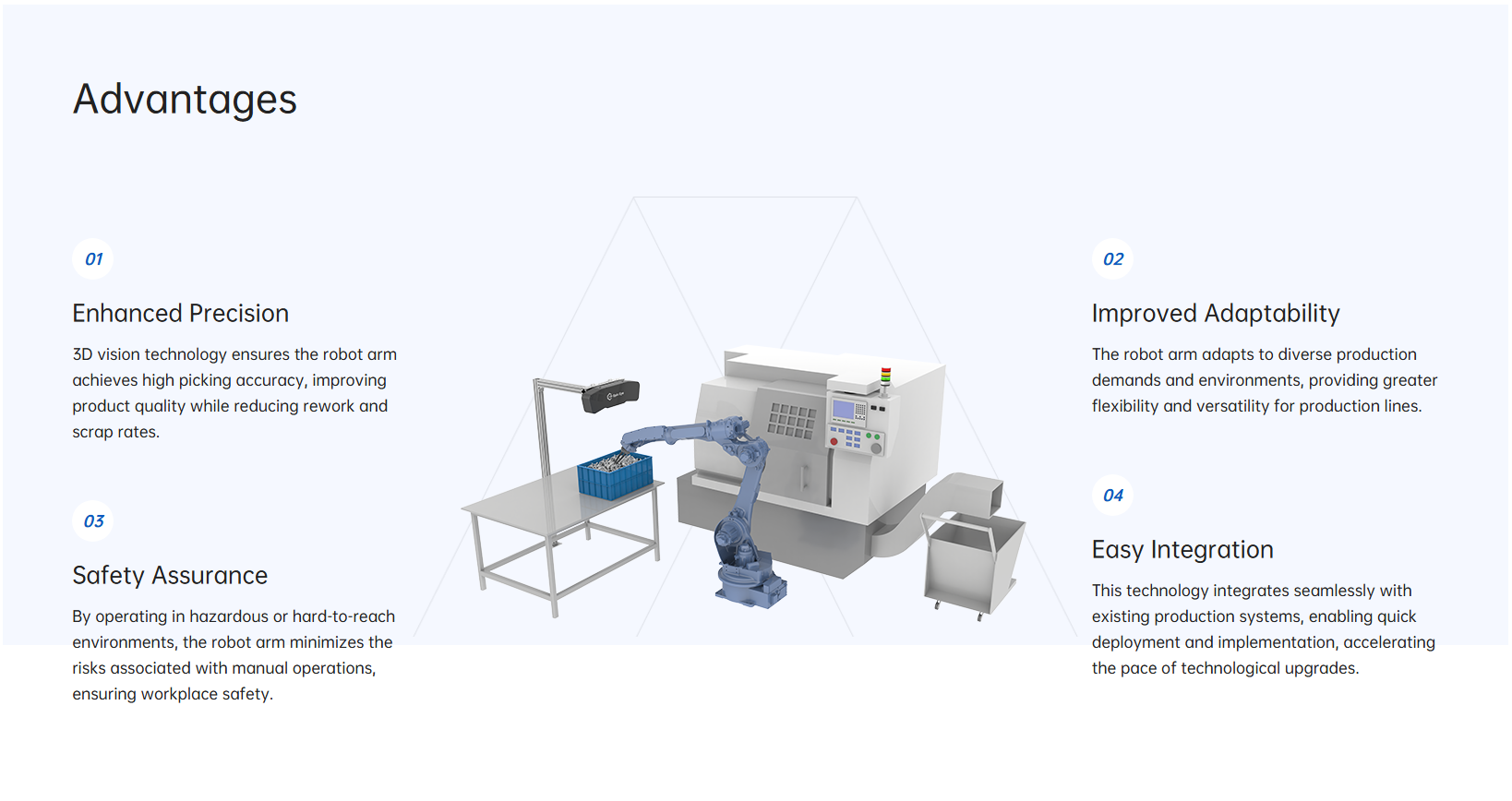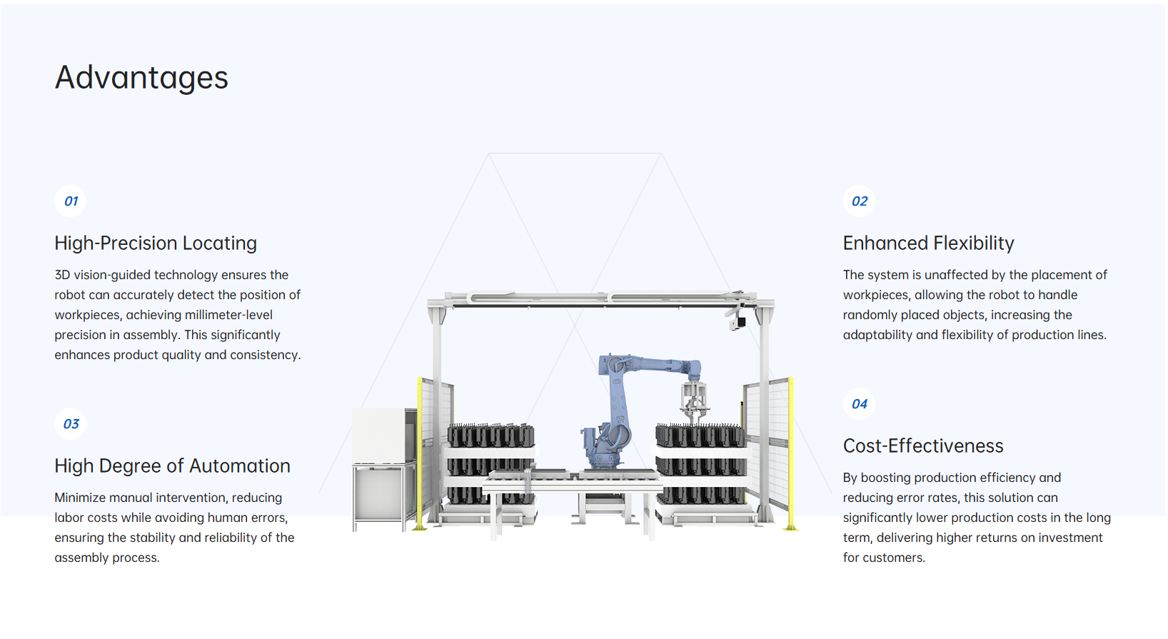 솔루션 및 적용 사례 다양한 산업 분야에서 화인로보틱스의 기술이 어떻게 비즈니스를 혁신하고 있는지 확인해보세요. 산업별 솔루션 자동차용접, 조립, 부품 검사 등 자동차 제조 공정의 효율성을 극대화하는 자동화 솔루션 전자정밀한 부품 핸들링, PCB 조립, 품질 검사를 위한 고속/고정밀 로봇 솔루션 물류창고 자동화, 피킹 및 패킹, 팔레타이징 작업을 위한 스마트 물류 로봇 시스템 서비스리테일, 의료, F&B 등 다양한 서비스 분야에서 고객 경험을 향상시키는 대화형 로봇 상세 적용 사례 (Case Studies) 현재 페이지 준비 중입니다. 곧 성공적인 고객 도입 사례를 소개해 드리겠습니다. AGIBOT Interactive Service Robot Omnihand Pro Agibot_LingXi X2 ROKAE Collaborative & Industrial Robots Automate Bolt Tightening with ROKAE xMate ER Series Cobot Automobile Seat Off-Line Handling-NB220 Robot in Grinding and Polishing-NB12 Spot Welding on Automobile-NB220 Autoparts-Roof Panel Gluing-CUT Autoparts-Pistion Grinding Production Line ER7Pro_Engine Cylinder Head Deburring Production Line 7-Axis Cobot in Bolt Tightening and Casting Deburring TransferTech Epic Eye Industrial 3D Camera Depalletizing Assembly MachineTending MachineTending